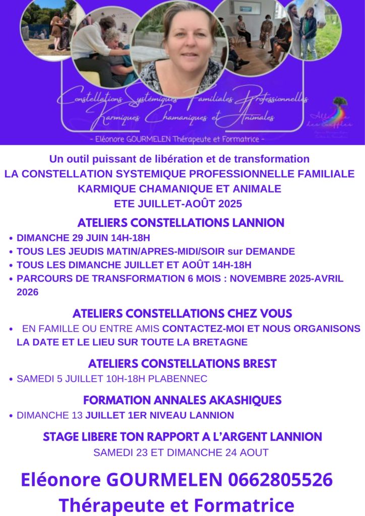 #atelier thérapie #stage constellation #2025 #2026 #constellations systémiques familiales chamaniques karmiques et animales #Atelier constellation Bretagne #côtes d’Armor #Atelier constellation Lannion #Atelier constellation Brest